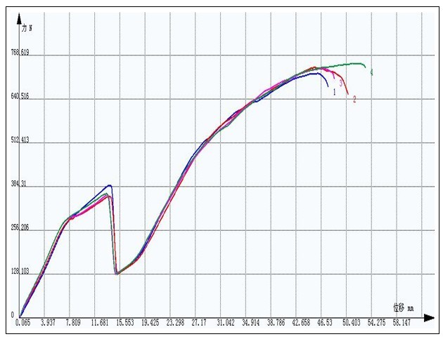 汽車用氣門嘴拉脫試驗數據曲線: